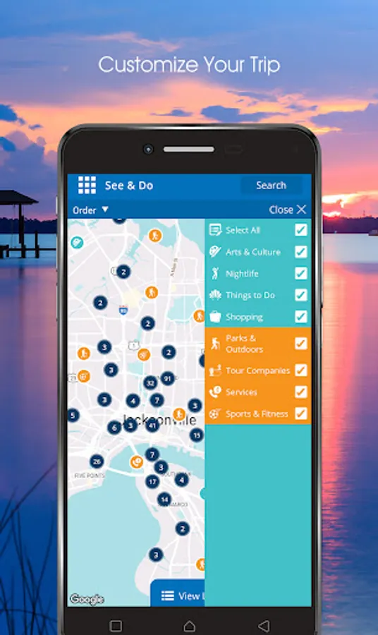 • Share events, places, and your custom plan with friends so they can join you in Jacksonville!