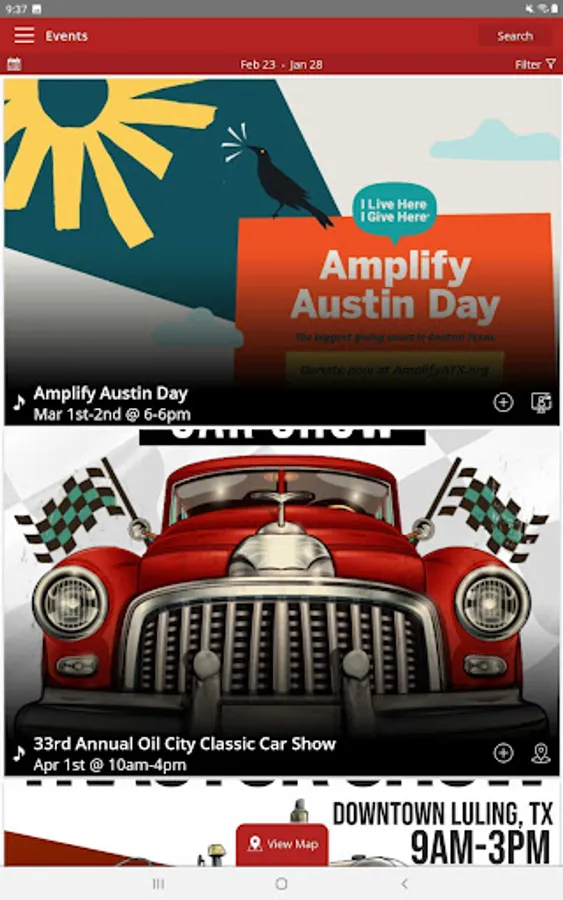 • View upcoming events near you