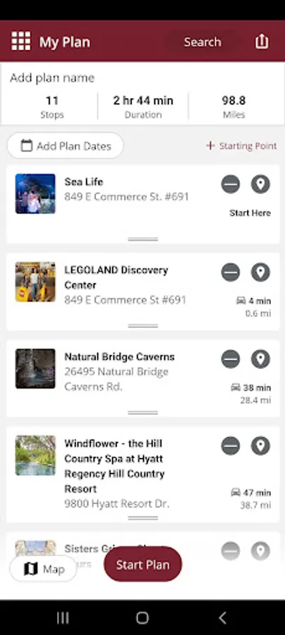 I've never allowed me to sign in. The links it would send to my email would send me to the sign on page which would not allow me to sign in. It will not connect to Facebook either. I was never able to use it as described which is too bad cuz I really enjoy visiting San Antonio and I'd like to know what to expect when I visit.