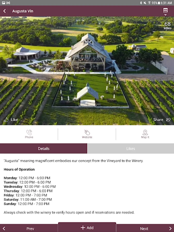 • Share wineries, businesses, and your itinerary with friends and family