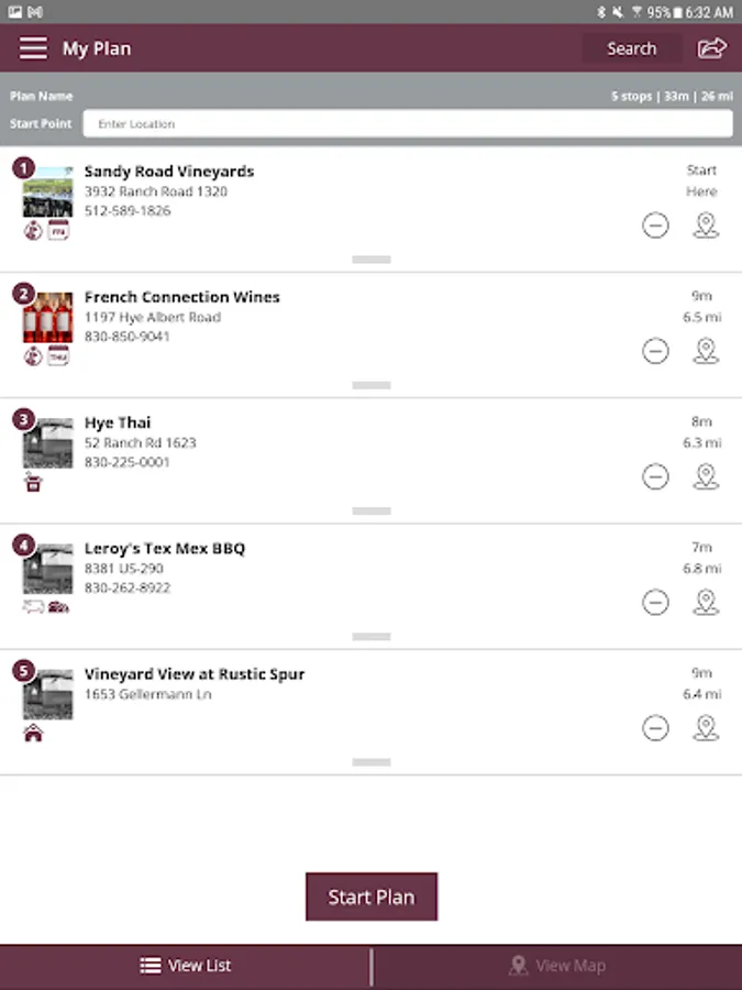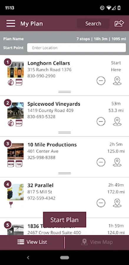• Create your own custom itinerary by adding Texas wineries, businesses, and tours to your own custom plan