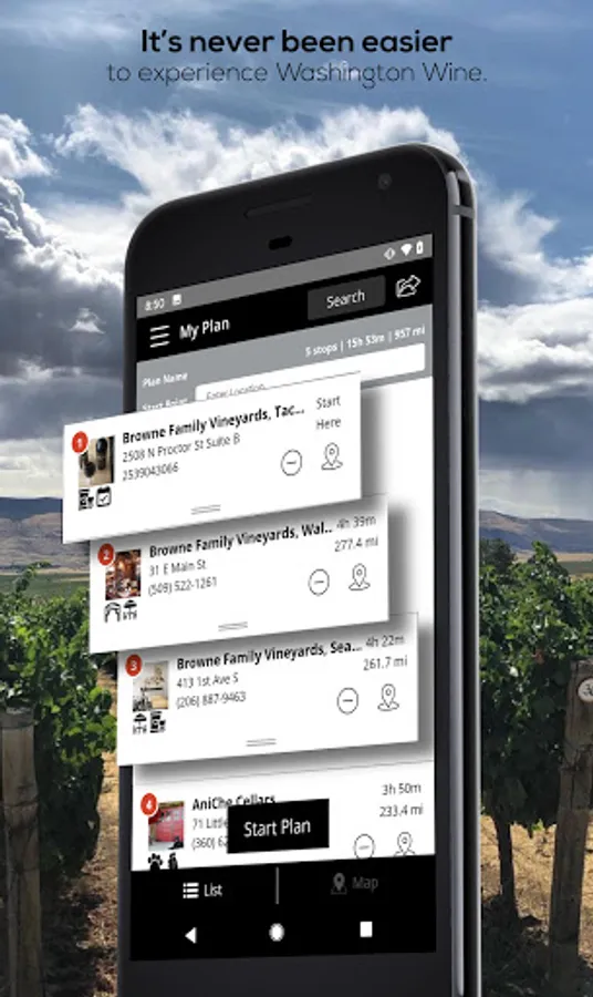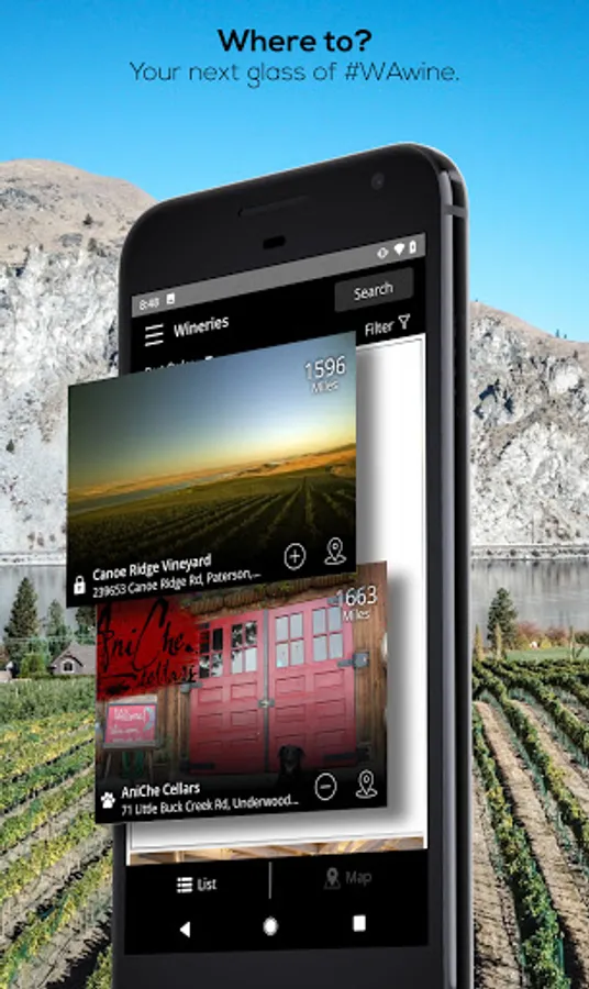 The Map My WA Wine app is designed to help you explore all things wine in Washington State and plan your perfect vacation, trip or getaway!