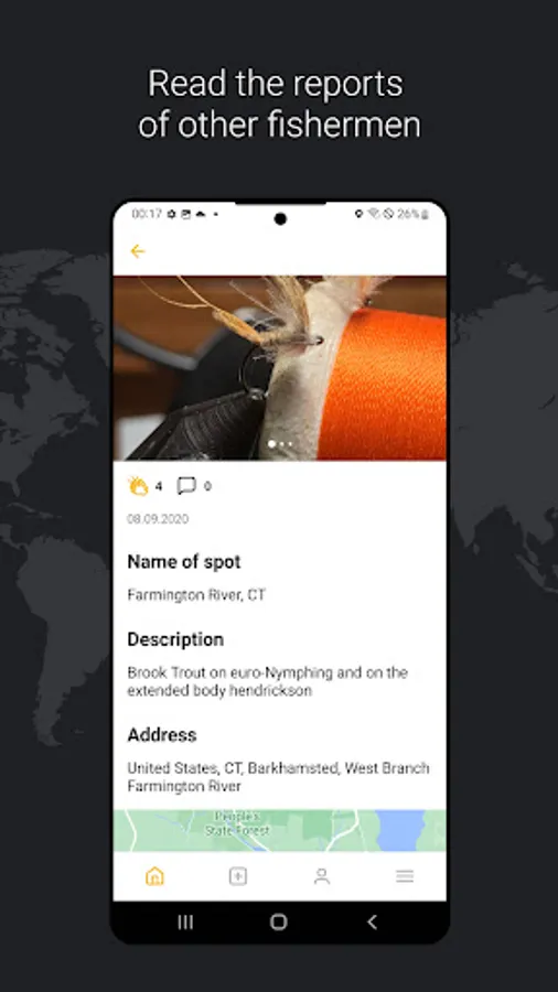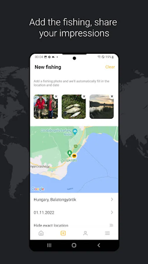 Not sure where to go fishing? Go to the map with marks from other users, view photos, catch, and also read the description! Decided on the choice? Pressing one button will send data to the navigator, which will take you directly to the place of fishing!