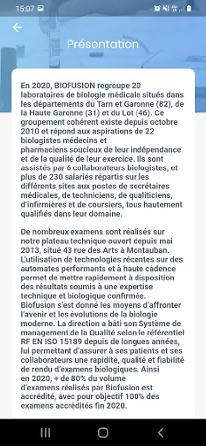 LBM BIOFUSION is a medical application aimed at providing a sampling manual for health professionals (nurses, biologists, doctors).