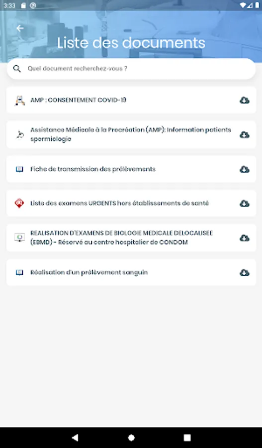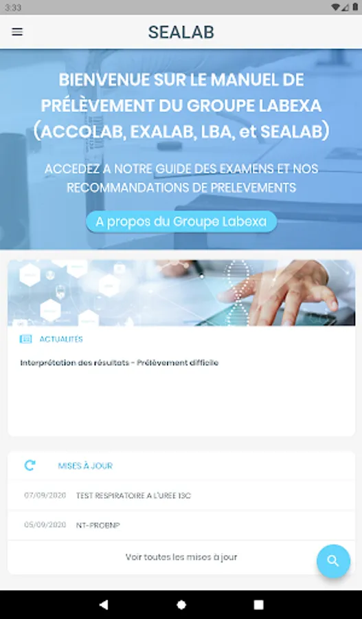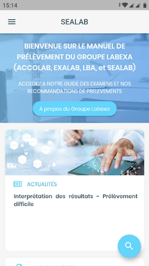 Catalog LABEXA is a medical application whose objective is to provide a sampling manual for the use of health professionals (Nurses, Biologists, Doctors).