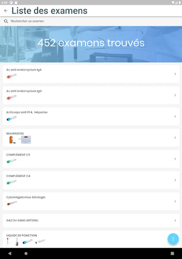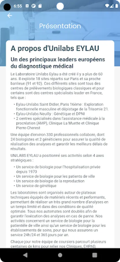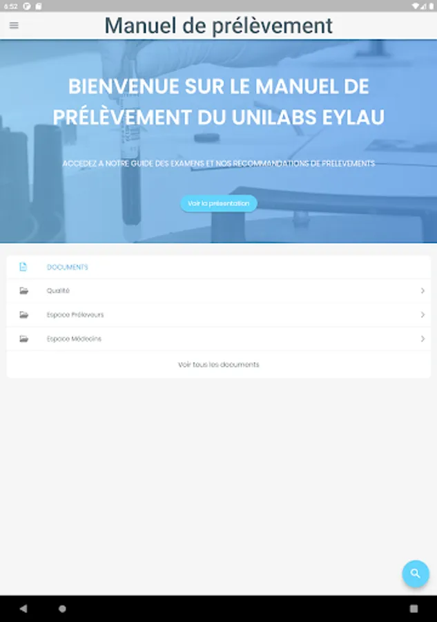 UNILABS EYLAU is a medical application whose objective is to provide a sampling manual for the use of health professionals (Nurses, Biologists, Doctors).