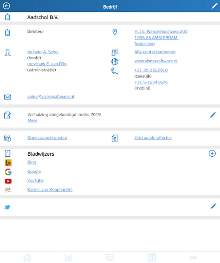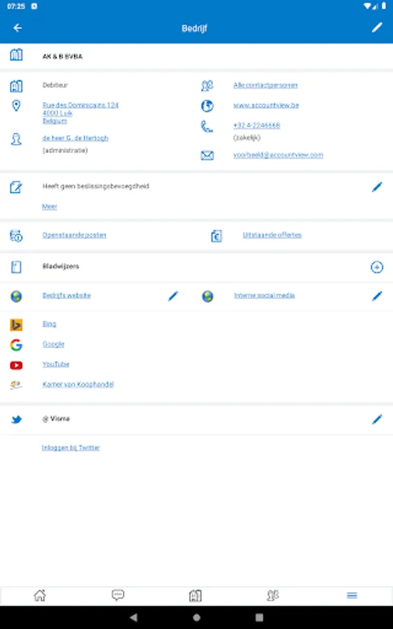 Do you have any questions or remarks? Visit https://nl.visma.com/producten/accountview/accountview-contact-app for more information. You can contact us by sending an email to sales@visma.com or by calling 020 355 2999.