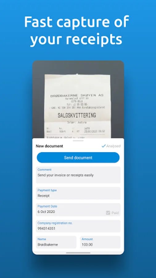 You reduce the risk of receipts being forgotten and get the bookkeeping documents straight in to your accounting program. The booking is made easy, as you have all the information you need to make the entries available on your screen.