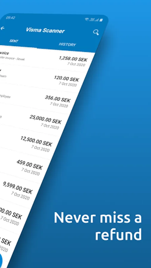 With the free app Visma Scanner you can take photos of your receipts and invoices and then forward them digitally to the accounting programs Visma eAccounting, Visma Administration, Visma Förening and Visma Fakturering, Visma Netvisor, Visma Severa, Visma Mamut, Visma AccountView.