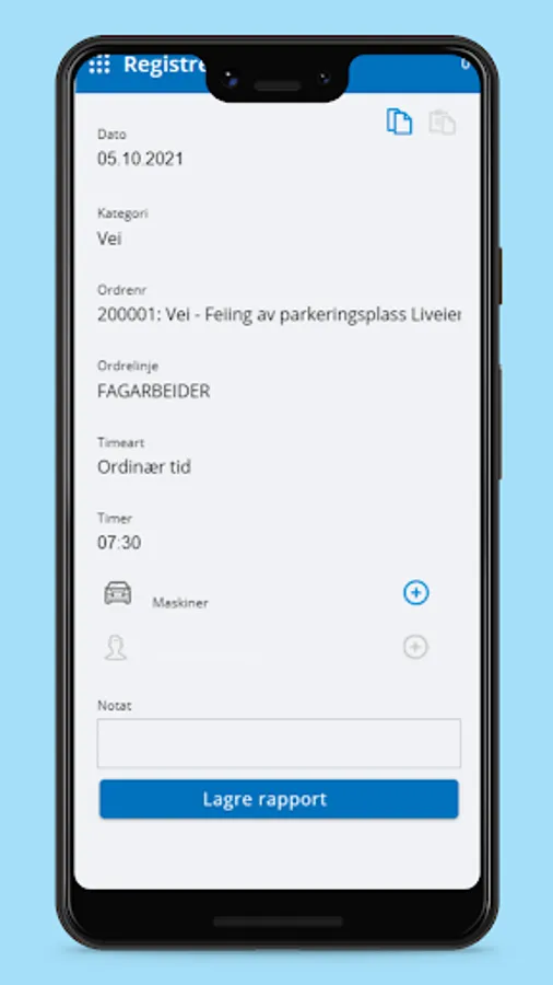 Here, employees can enter hours for assignments on themselves, cars and machines. The hours are submitted for approval, invoicing and cost distribution in the organization. With this app, the hours can be spent out on the assignment site as soon as the job is done.