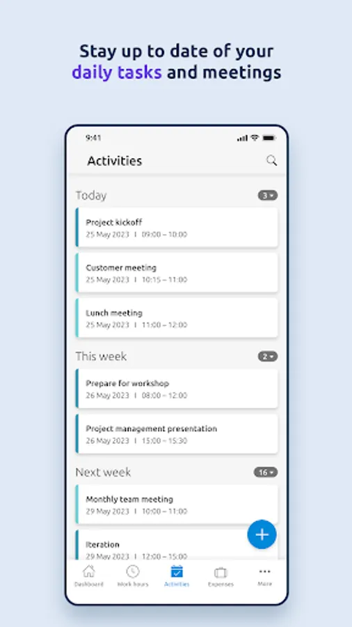 Create tasks, add participants and get prompted with what's coming up today and next.