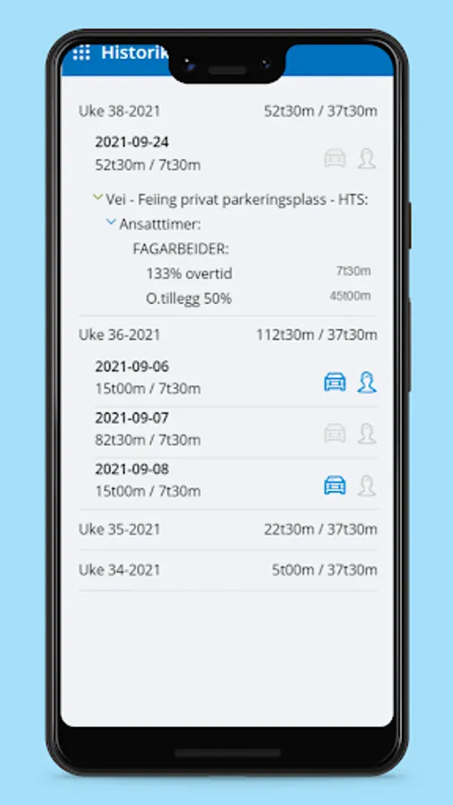 Here, employees can enter hours for assignments on themselves, cars and machines. The hours are submitted for approval, invoicing and cost distribution in the organization. With this app, the hours can be spent out on the assignment site as soon as the job is done.