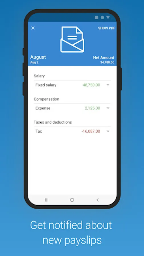 • Setup automatic notifications for incoming payslips, vacation approval, and more.