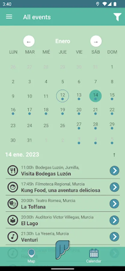 Murcianeo is an agile events guide organized in maps, lists and calendars, and through which you can have access to the most interesting events and plans: