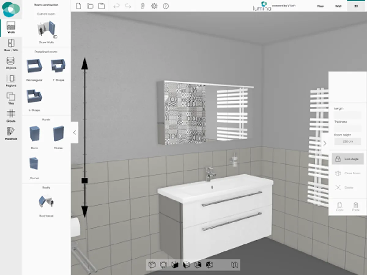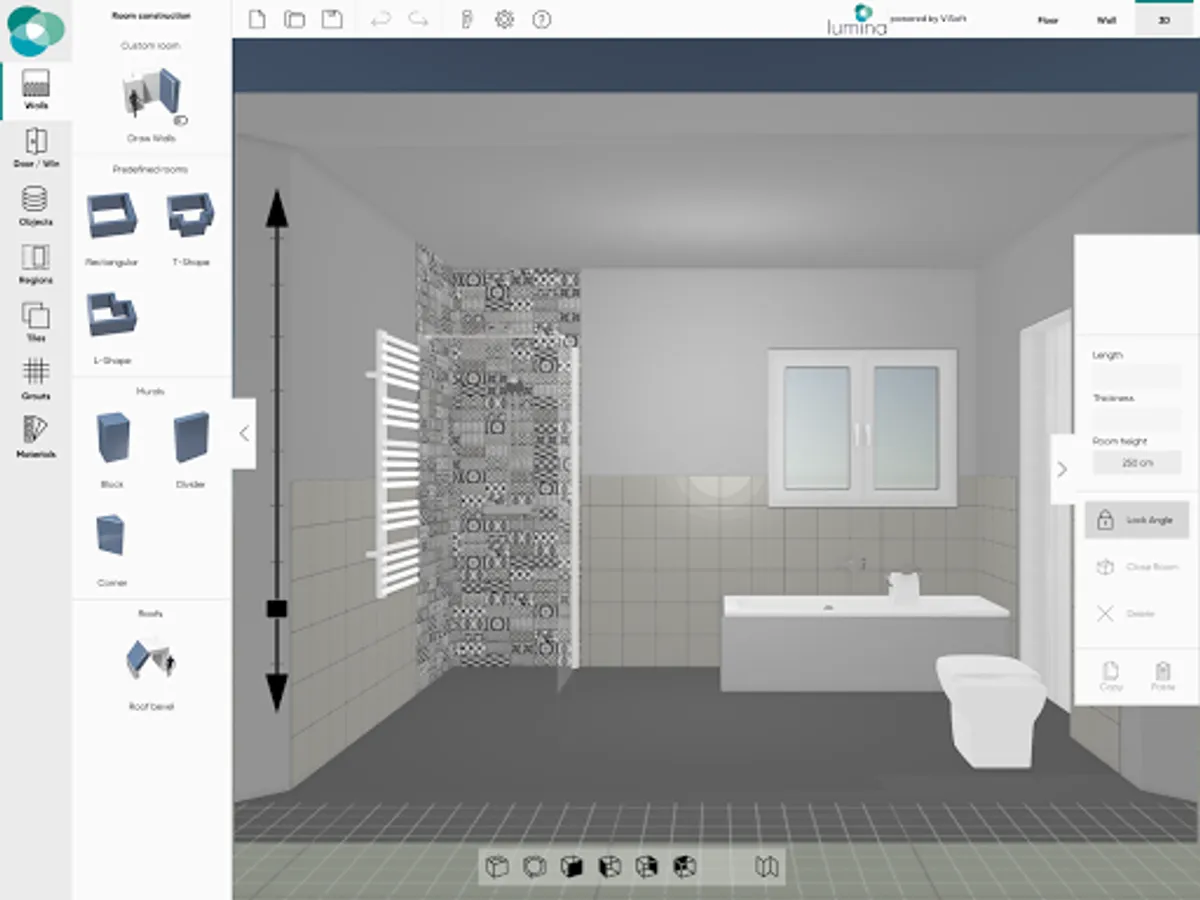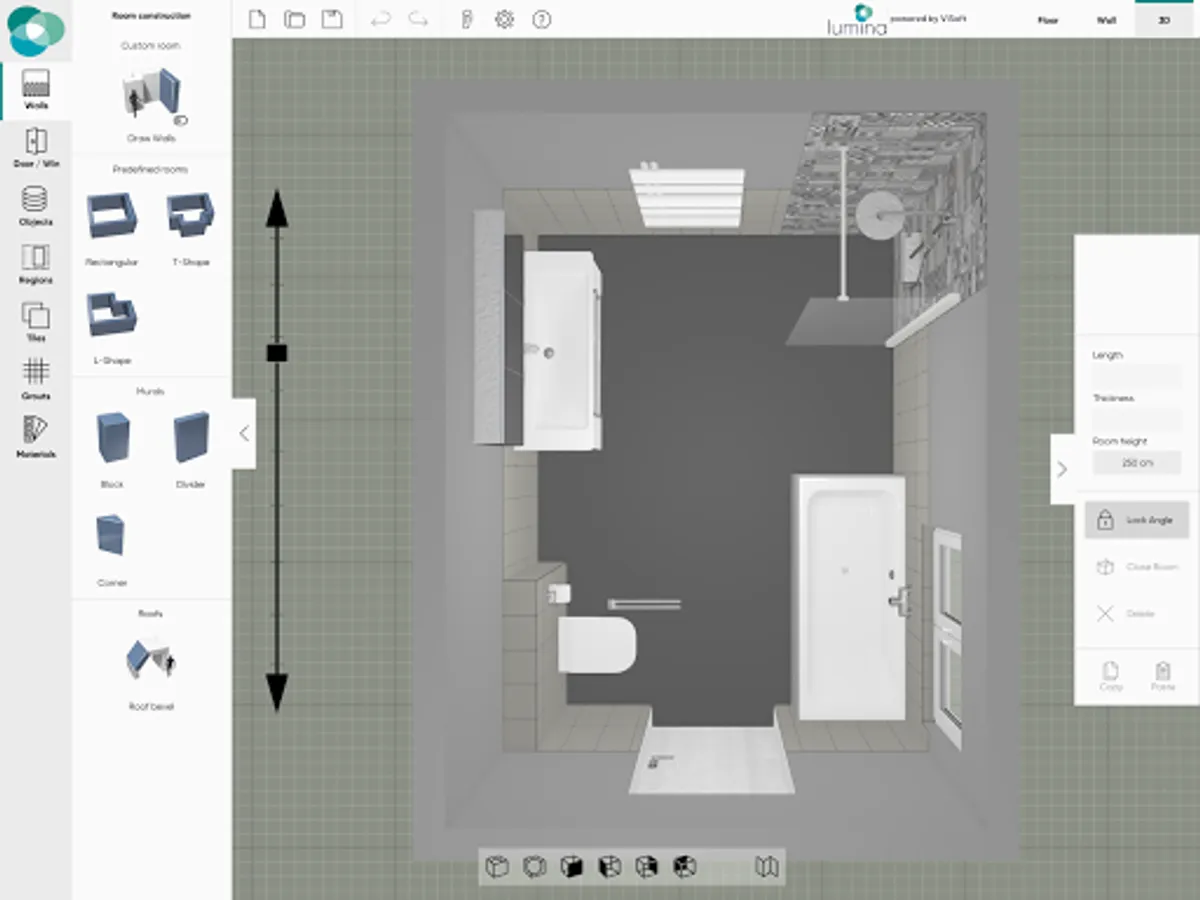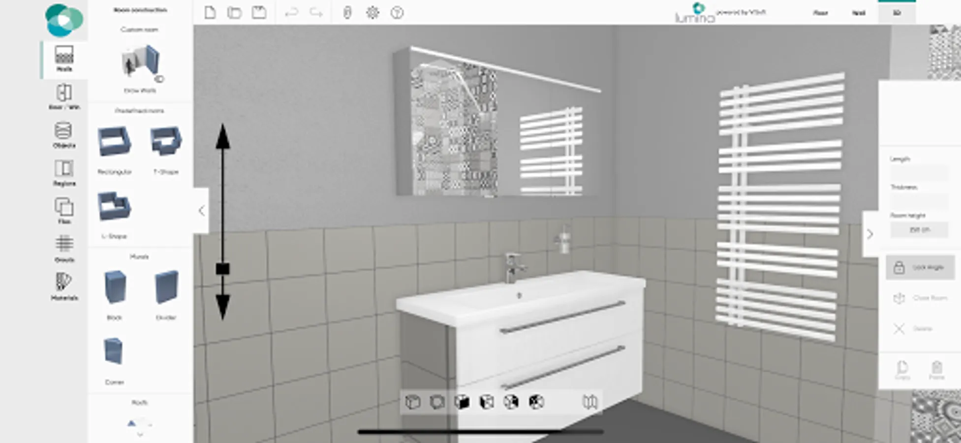 Create rooms, insert sanitary objects and arrange them. Your new bathroom gets the perfect finish with matching tiles and decoration. Save your project, send it to yourself by email, send it to your Lumina bathroom exhibition and get advice on site.