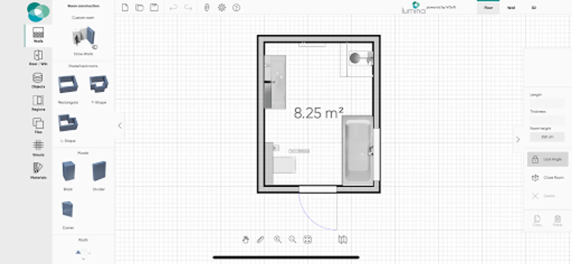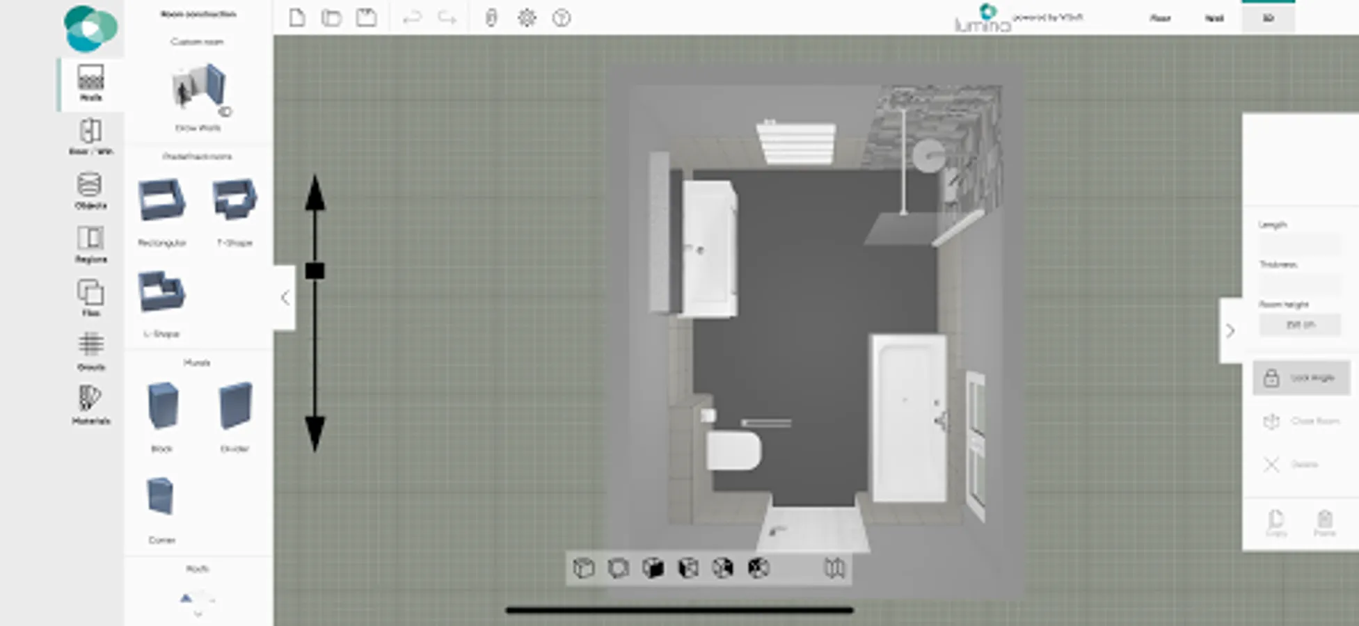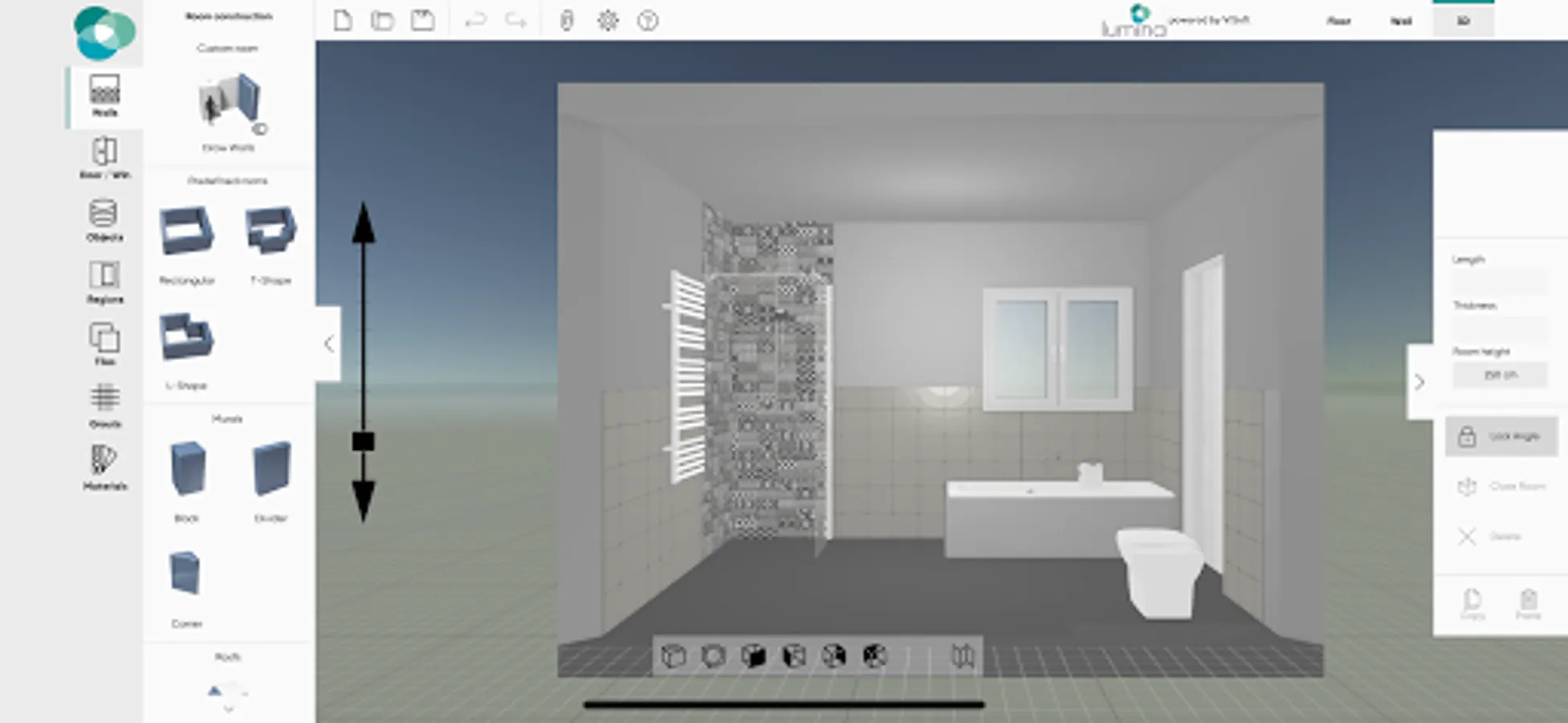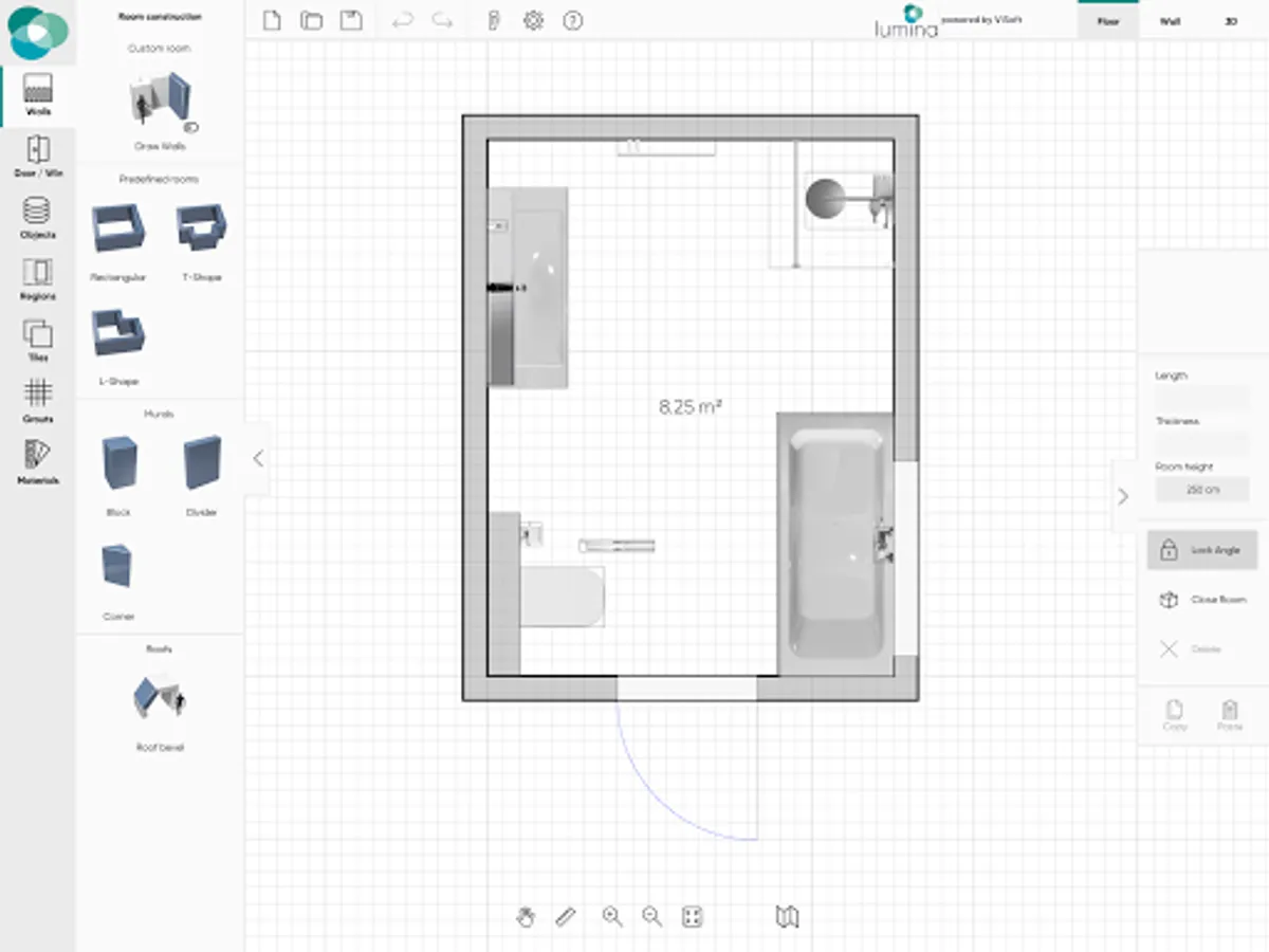 Create rooms, insert sanitary objects and arrange them. Your new bathroom gets the perfect finish with matching tiles and decoration. Save your project, send it to yourself by email, send it to your Lumina bathroom exhibition and get advice on site.