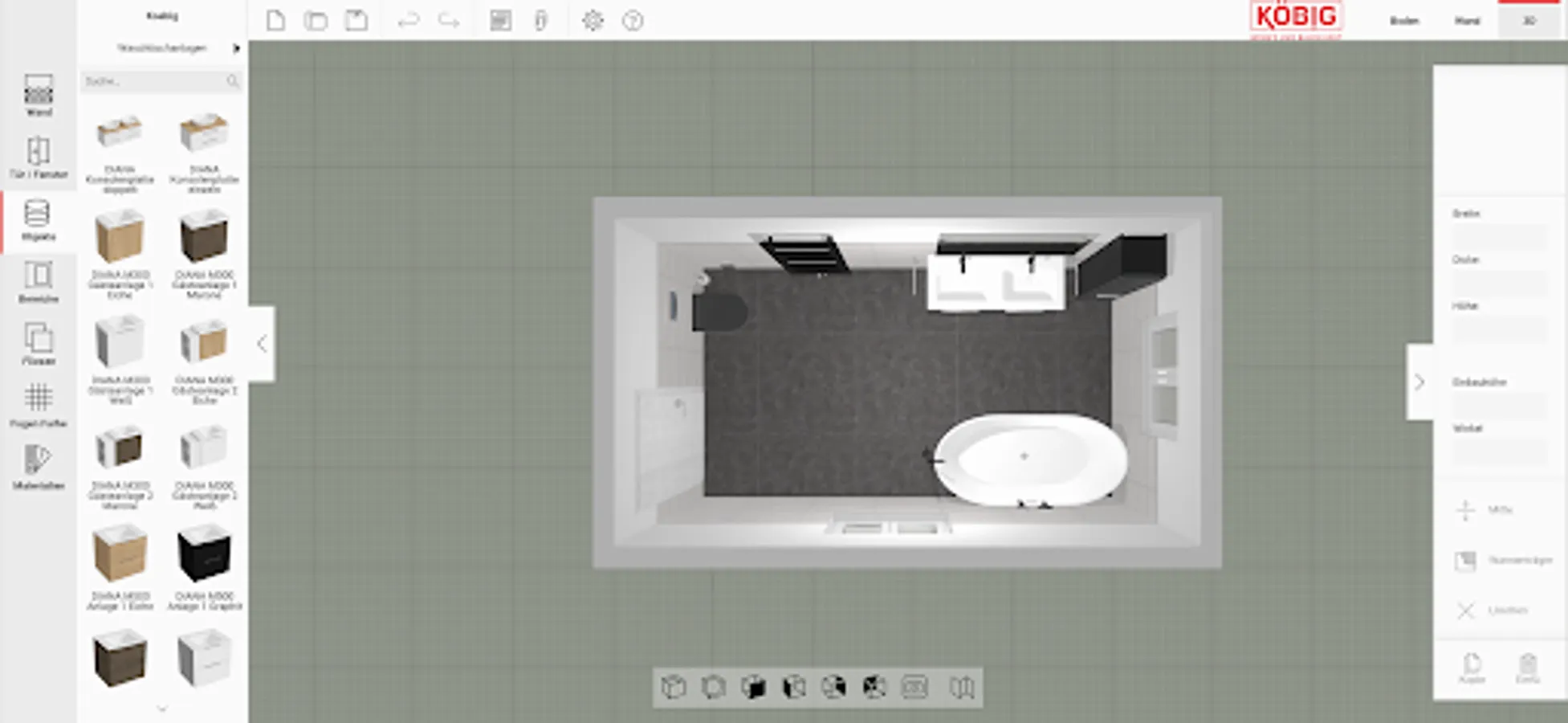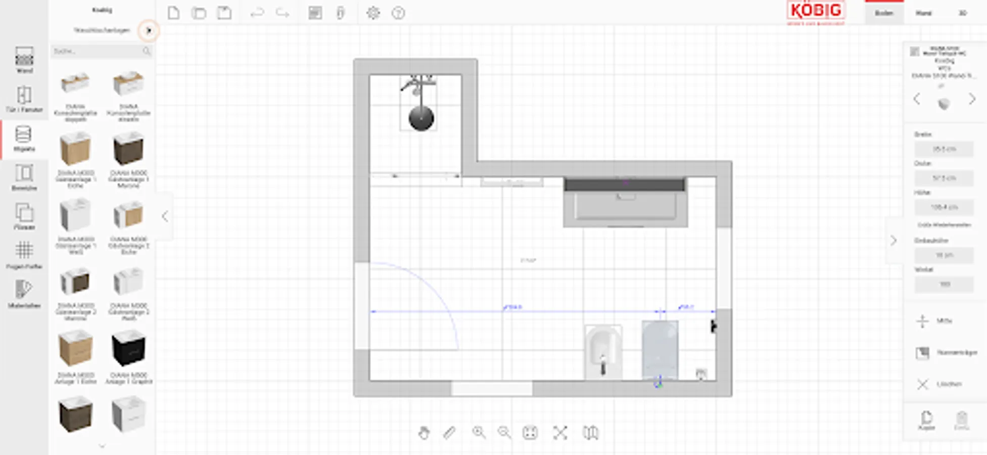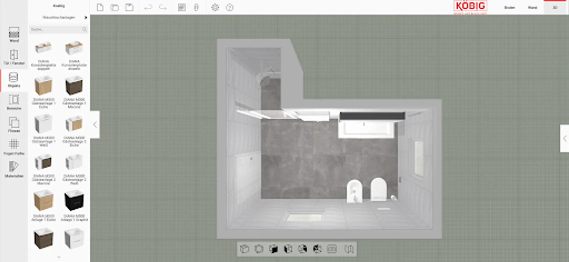 The app, specially tailored to Köbig customers, enables you to plan your bathroom – anytime, anywhere. The room drawing functionality and the planning result serve as a basis for discussing design ideas with your Köbig consultant or craftsman. Be inspired by Köbig's digital and mobile bathroom planning tool. Download now.