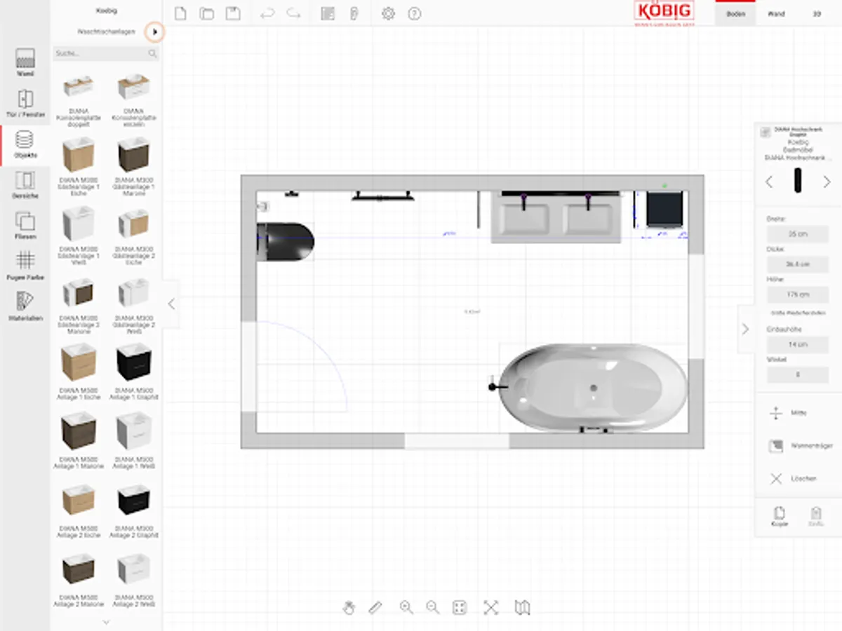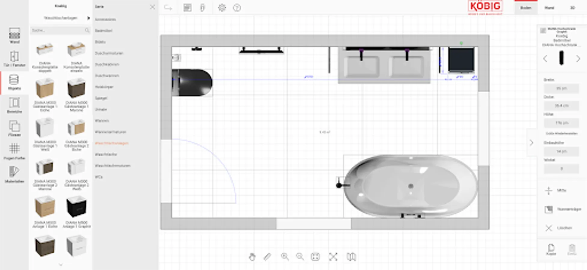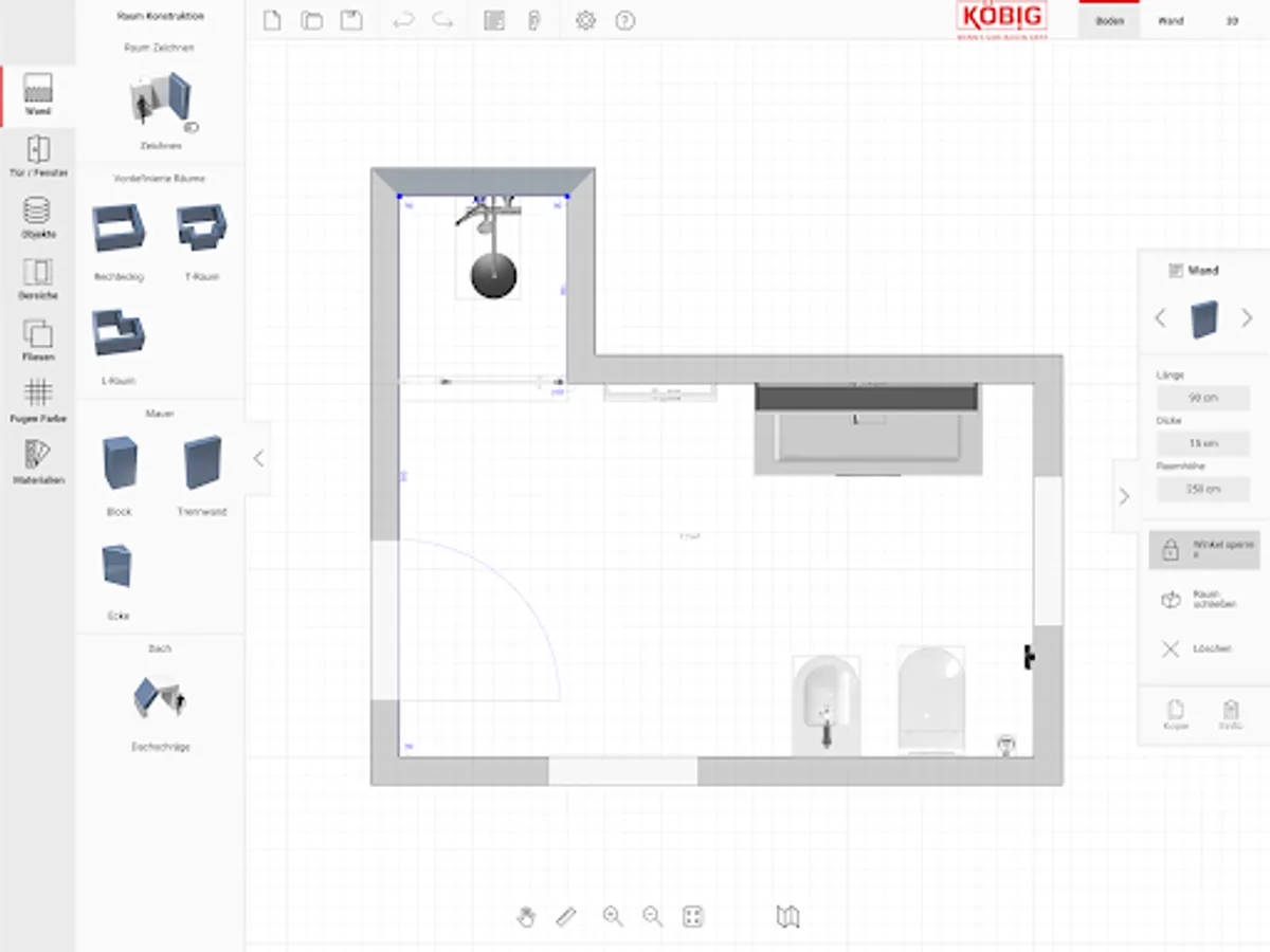 The app, specially tailored to Köbig customers, enables you to plan your bathroom – anytime, anywhere. The room drawing functionality and the planning result serve as a basis for discussing design ideas with your Köbig consultant or craftsman. Be inspired by Köbig's digital and mobile bathroom planning tool. Download now.