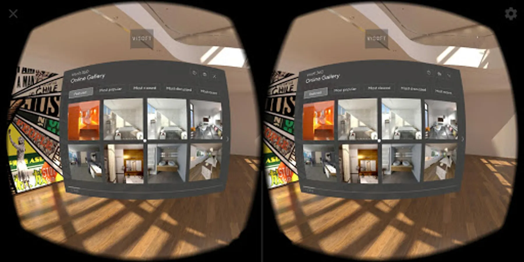 In ViSoft Premium you can create a Virtual Reality-Panorama with just one click, with the help of the ViSoft Live Module. Load the panorama on your smartphone, into the folder „Android/data/com.visoft.visoftvr/files/Panoramas“. One project should be named „default.vipr“ – This project will be your main room in the app. The projects that you see in our app right now are dynamically loaded from our ViSoft360-Cloud. If you do not wish to show these projects, please turn your phone into flight mode. Your smartphone will be used as display then, linkable with any VR glasses. We recommend the second generation of the Crestop VR Box right now.