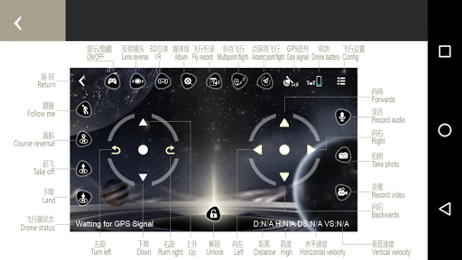 This is an app which we can control a quadcopter to fly with a WiFi camera module , it’s also display a real-time video taken by the WiFi camera module, which include below feature.