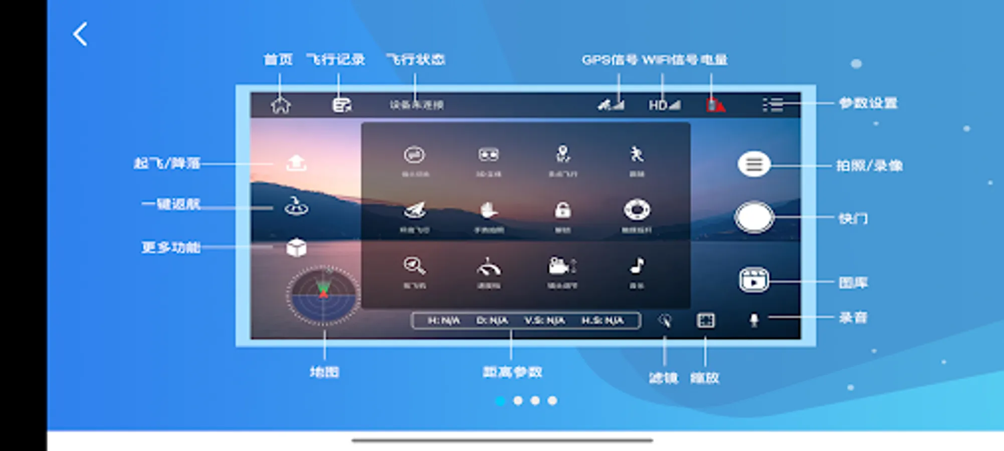 This is an app which we can control a quadcopter to fly with a WiFi camera module , it’s also display a real-time video taken by the WiFi camera module, which include below feature.