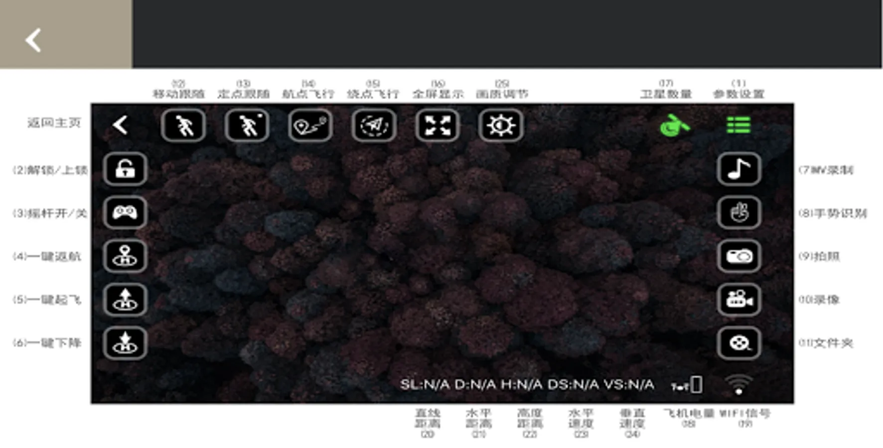 This is an app which we can control a quadcoptor to fly with a wifi camera module , it’s also display a real-time video taken by the wifi camera module, which include below feature.