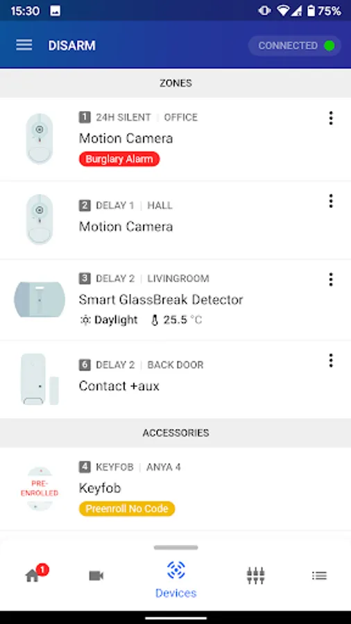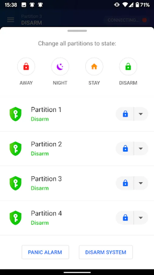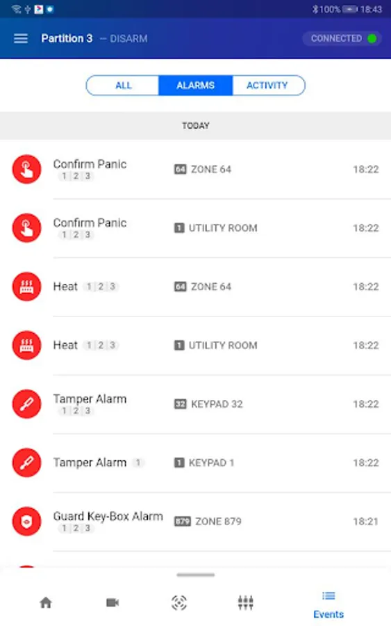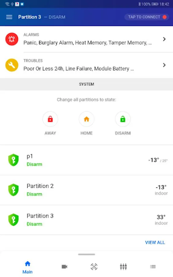 - Arm & Disarm the alarm system