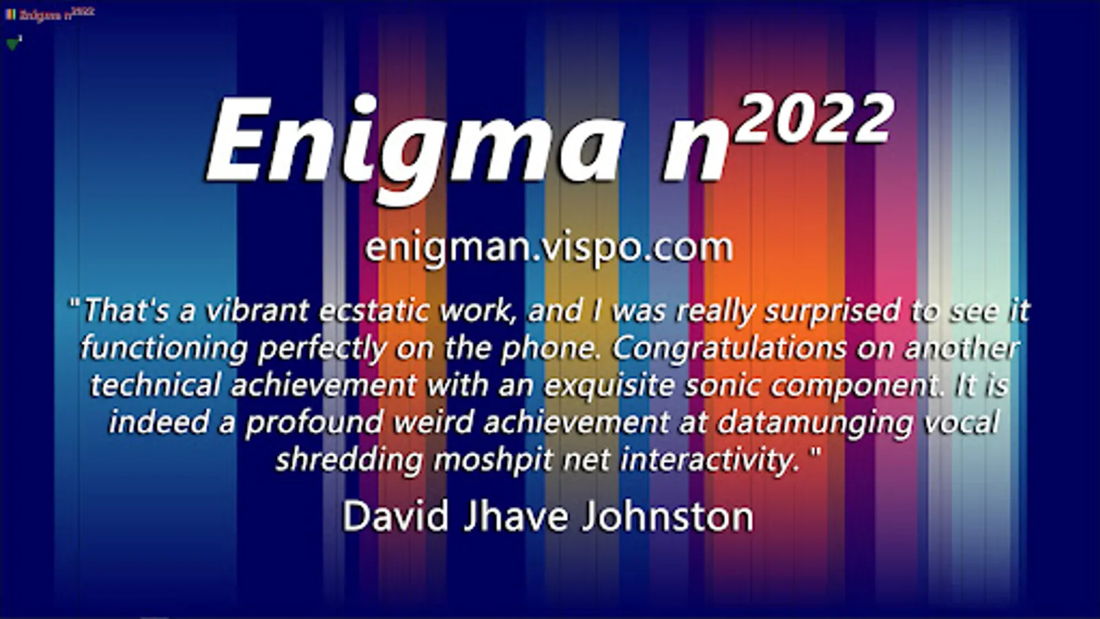 Enigma n^2022 is a philosophical music & poetry toy for poets, musicians & philosophers from the age of 7 up. This is a new sort of poem. A new sort of music. A new sort of toy. A new sort of instrument. A new sort of art. This puts it all together.