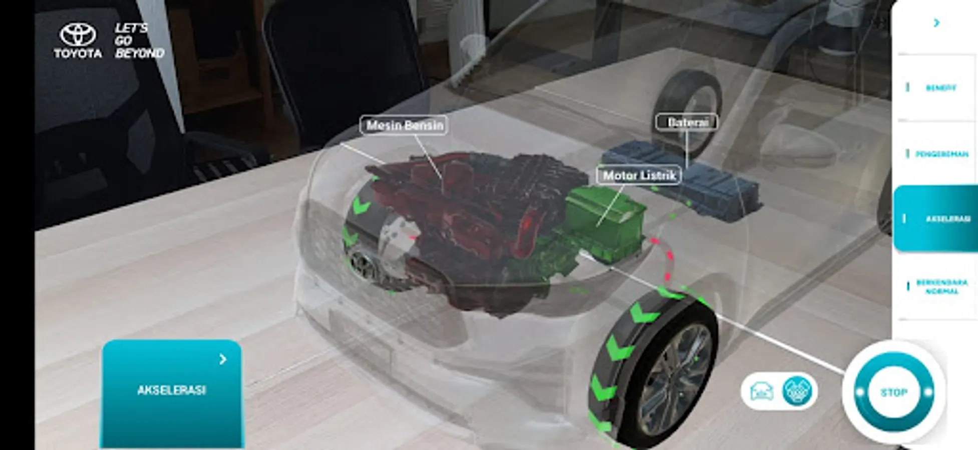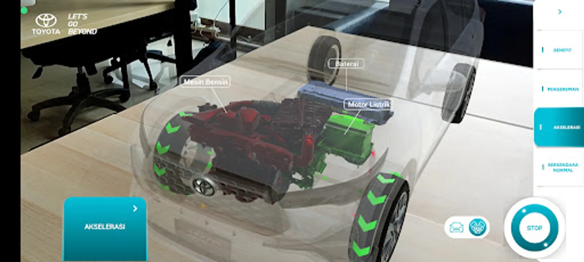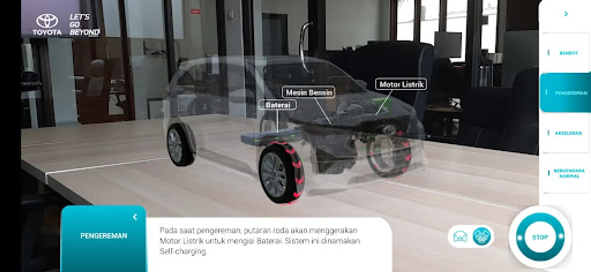 Fitur mobil interaktif, memungkinkan pengguna untuk memindai permukaan datar dan dapat melihat dan berinteraksi dengan model virtual mobil Toyota All New Kijang Innova Zenix Hybrid EV.