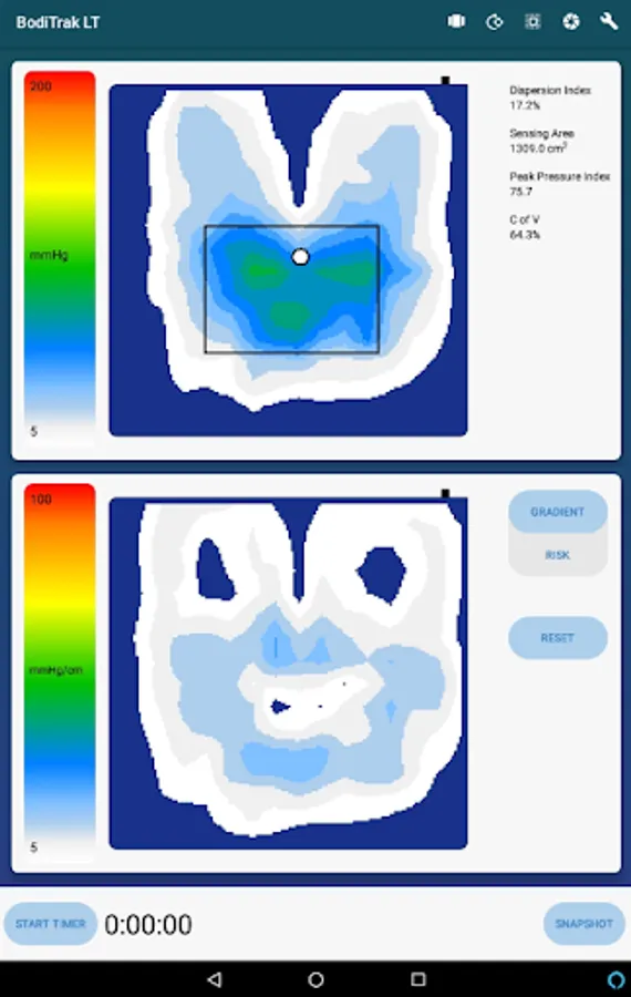 BodiTrak LT is an easy to use, stretchable, pressure and shear monitoring system that is applied on top of a seating surface. It assists the user (client, caregiver) in identifying and managing areas on a patients skin where they may be experiencing high pressures and shear forces. It is a powerful tool to help prevent tissue trauma, increase patient comfort, monitor support surface performance and educate both clients and caregivers.