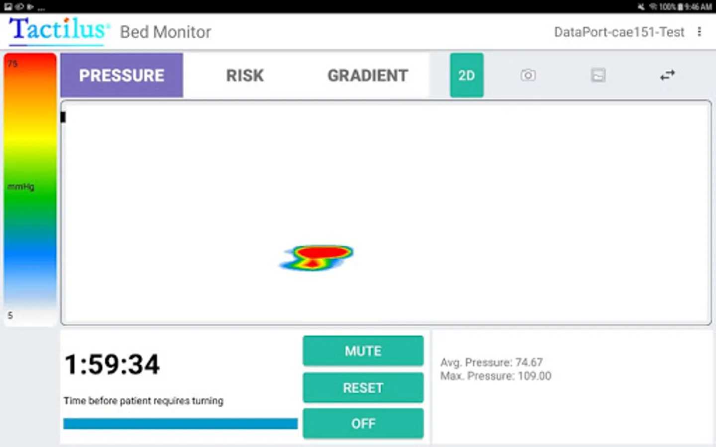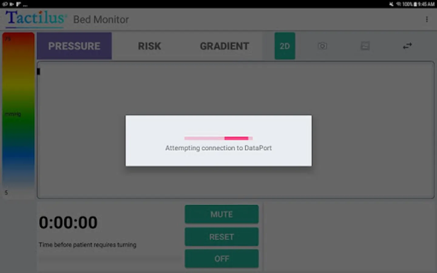 Using a Tactilus Bed Monitor with a Dataport allows a user to easily access Risk and Gradient information. The software also includes a timer option with selectable time periods. The Bed Monitor provides the patient or caregiver with essential information for improving patient care and reducing the expense of healing wounds.