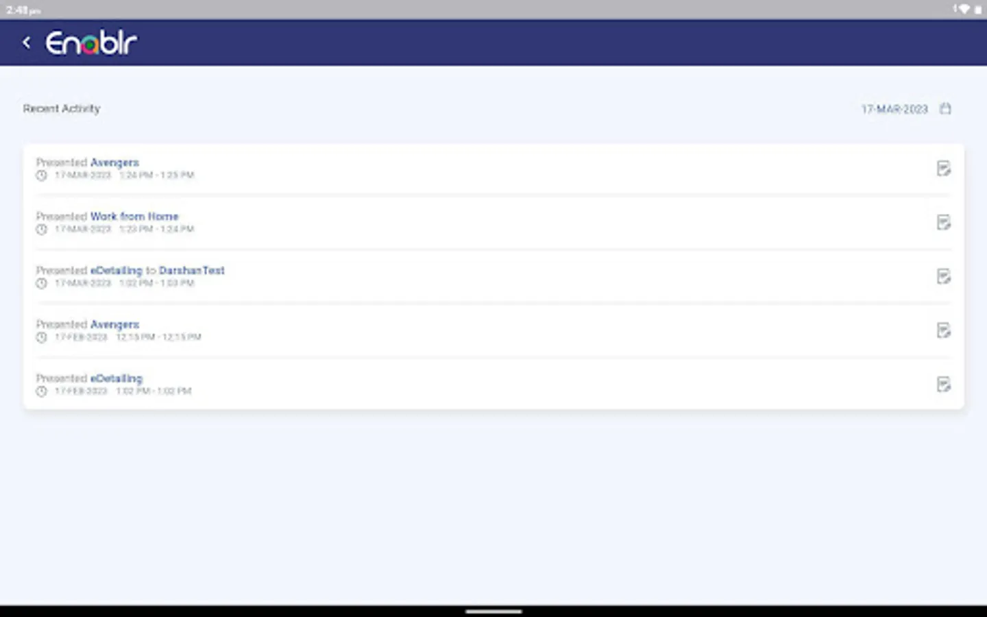 Enablr is an eDetailing platform, crafted to offer more possibilities. It is customizable, works offline and enables your field force to make powerful sales pitch on a tablet or on a smartphone. Communicate your brand story in an engaging fashion with Enablr.