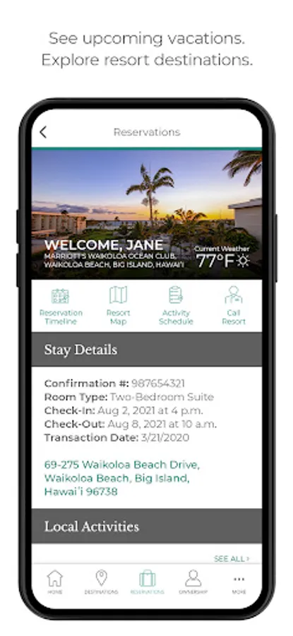 The Marriott Vacation Club® app makes accessing your resort information — and even your ownership — quick, easy, and convenient. So, whether you’re a longtime Owner or a one-time guest, you can plan for fun and live your best vacation life.