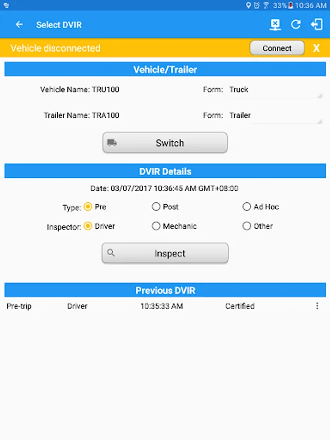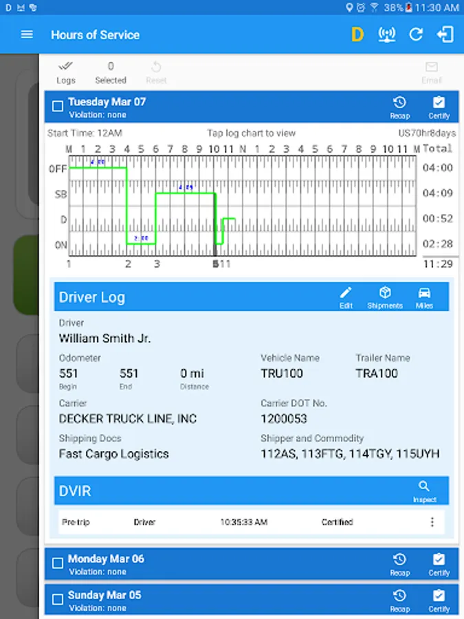 VisTracks™ Hours of Services is a powerful but easy to use tablet-based service certified with US Department of Transportation Federal Motor Carrier Safety Administration (FMCSA) regulations for electronic logs and vehicle inspections. Regulations for electronic driving and vehicle inspection logs have become commonplace to ensure the veracity of driver tablet input and ensured compliance with regulations. VisTracks Hours of Service is compliant with federal and state regulations as well as Canadian regulations.