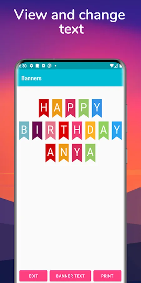 This simple personalized bunting maker app is simple and quick within a minute you can create banner your birthday or baby shower or weddings or Christmas or Halloween or any other party with your name in it. This app can also create cake topper.