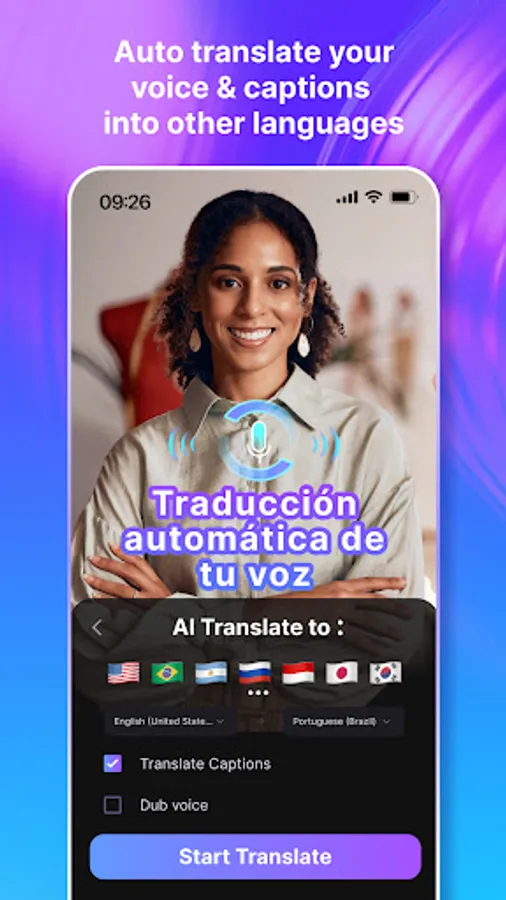 Translate your video's voice and text into different languages easily. From English to Spanish or Portuguese to French, get accurate dubbing and subtitles.