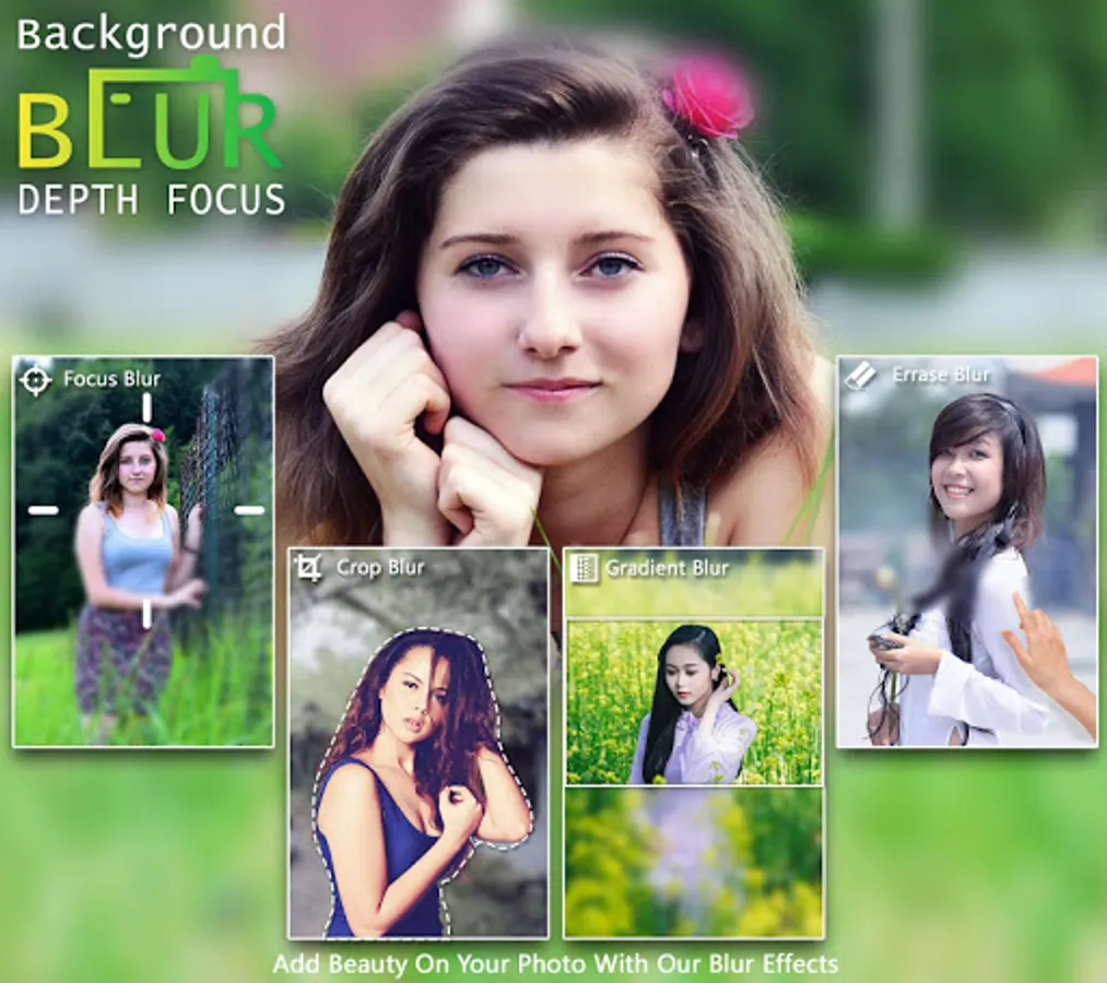 Blur Background Depth focus let you blur any selective parts of the photos to set focus on another wanted part of your photo. Blur image was never such easy before.