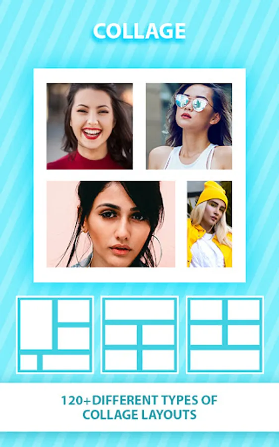 Create best photo collages with this feature. Make Photo collages with unlimited features like boarder selections, backgrounds, filters and stickers.