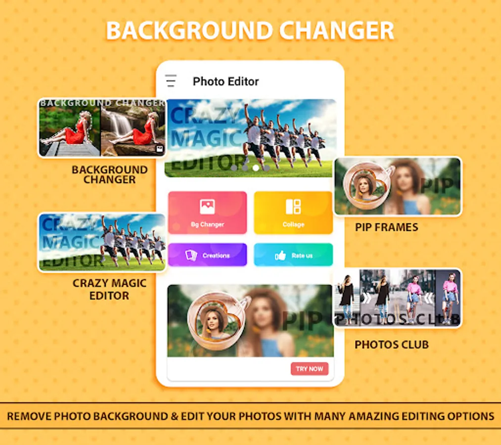 Grab this free app for erasing or removing background automatically with best quality. Background changer helps you to remove background from Photo with simple tool and add colorful backgrounds how you like. It's an amazing object removing app for free to develop stunning photos with high quality backgrounds. Unlimited multiple types of backgrounds available for download, edit with color effects and decorate with stickers, text.