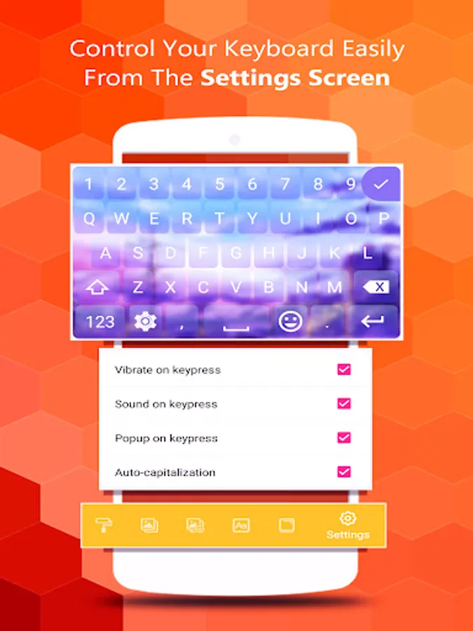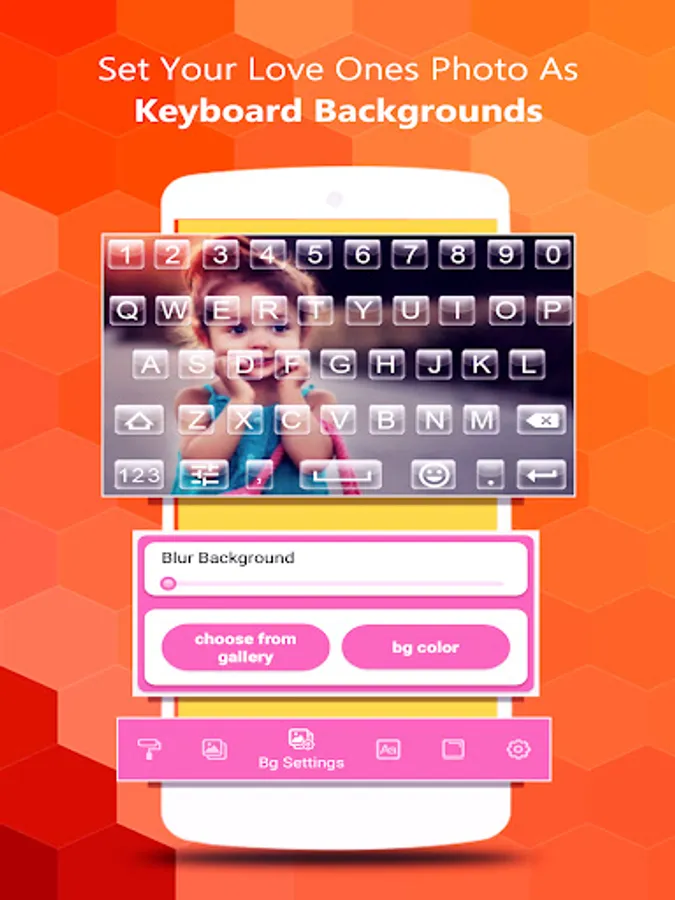 ★ Photo keyboard feature that allows you to customize your keyboard with your photos and other gallery images. If you want to see your beloved photo always while you typing then this feature is unique and suggestible. Change your keyboard into a canvas of memories.