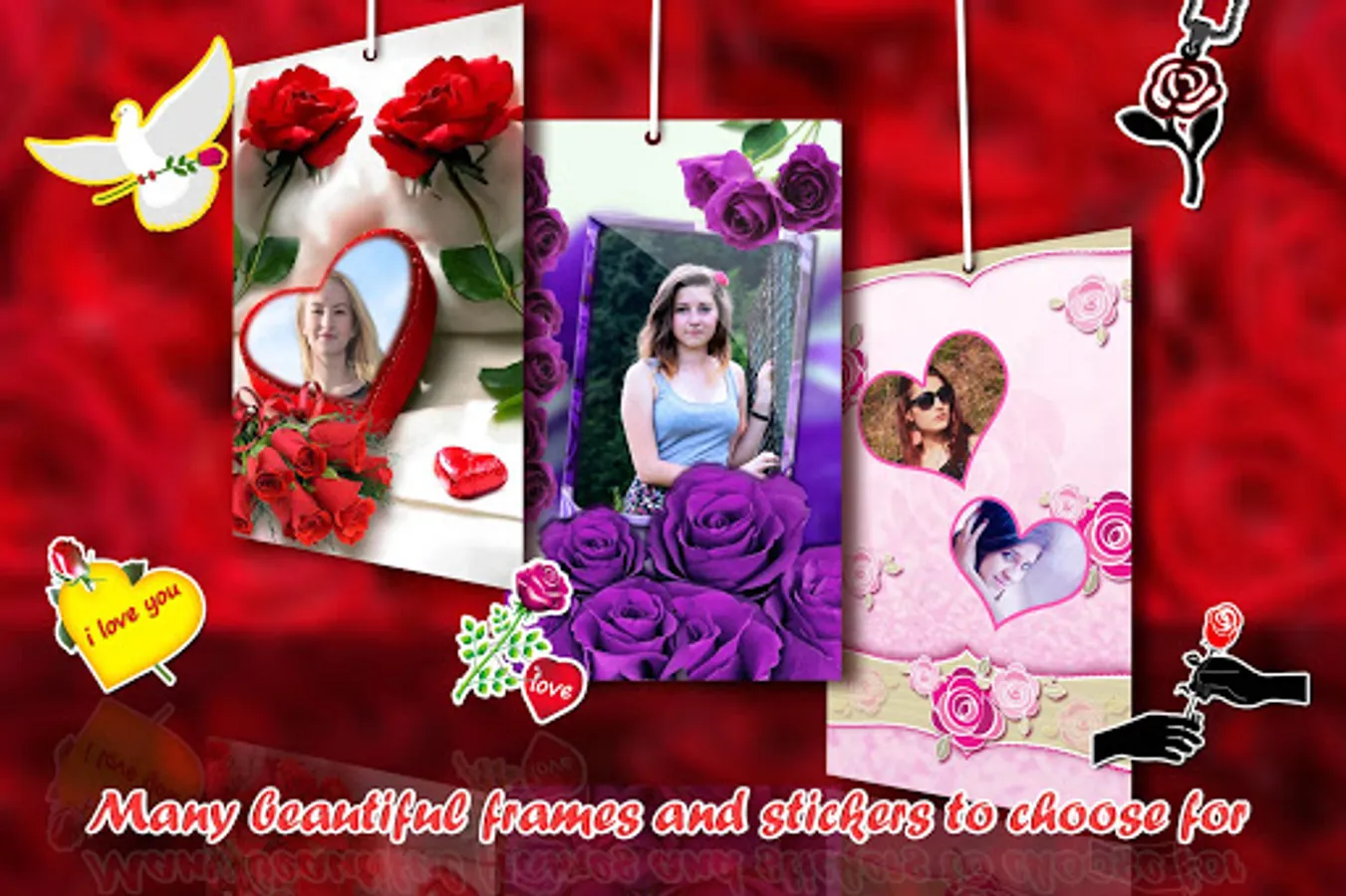 Rose flower is the symbol of Love and Effection. There are over a hundred species and thousands of colors in this plant around the world. Main attractive colors are red,pink,white and many more etc..Everybody celebrating their love with roses and rose flower bokehs.. That is the reason we are releasing beautiful rose photo frames application for free with creative collections of rose photo frames and rose flower backgrounds. You can decorate you and your love photos with this colorful Rose flower photo frames and send, share in media..