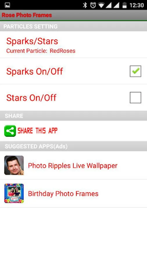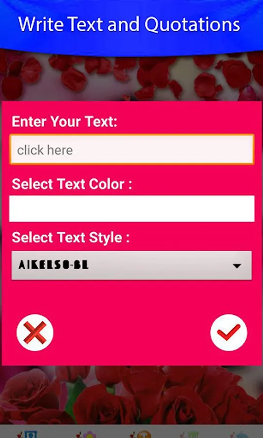 In this option you can select Rose photo frame and pick your photo and fit in it. Decorate with some flower stickers and text. Then save image and set wallpaper by clicking "Done".