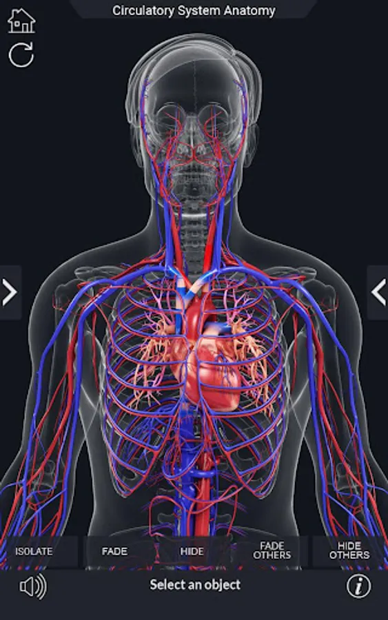 Circulatory System Anatomy app gives users an in depth look at the heart circulatory system anatomy allowing them to select , xray view, hide and show parts of the model as well as view real time animation, draw or white on screen and share screenshots, Audio pronunciation for all anatomy terms and more.