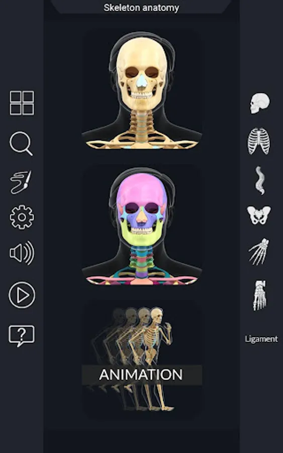 My Skeleton Anatomy gives users an in depth look at the Skeleton allowing them to select , X-ray view, hide and show parts of the Skeleton as well as view real time animation, draw or white on screen and share screenshots, Audio pronunciation for all anatomy terms and more.