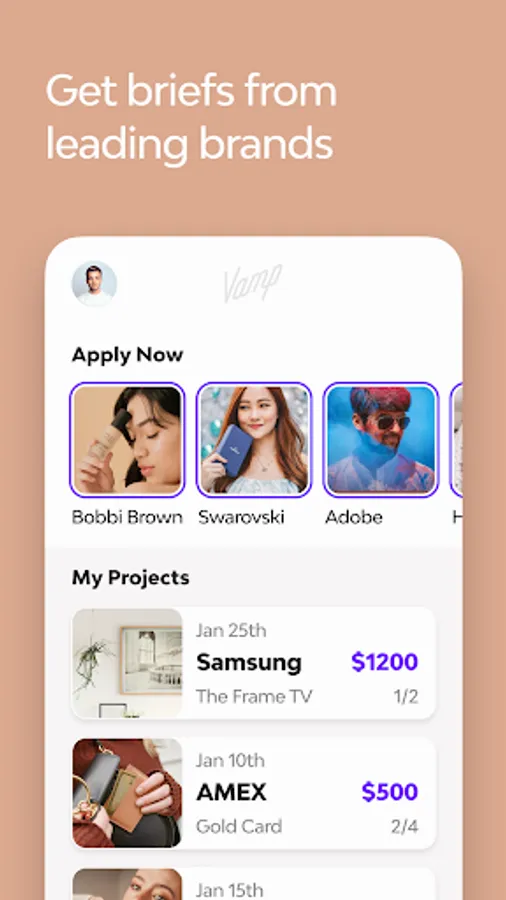 Access brands briefs and apply for the ones you want. You’re given creative control over your content and we provide guaranteed payments at the end of every campaign.