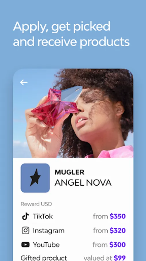 Through our app, we provide you with the opportunity to collaborate with brands like Adobe, Samsung and M.A.C, on Instagram, TikTok and YouTube campaigns.