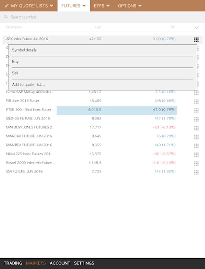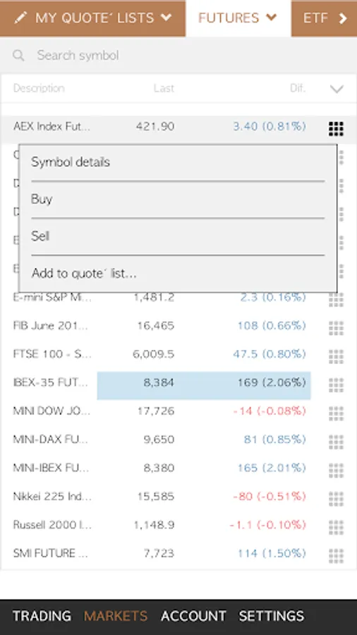 - Creation of the quotes´ lists of your favorite assets for its quick access.