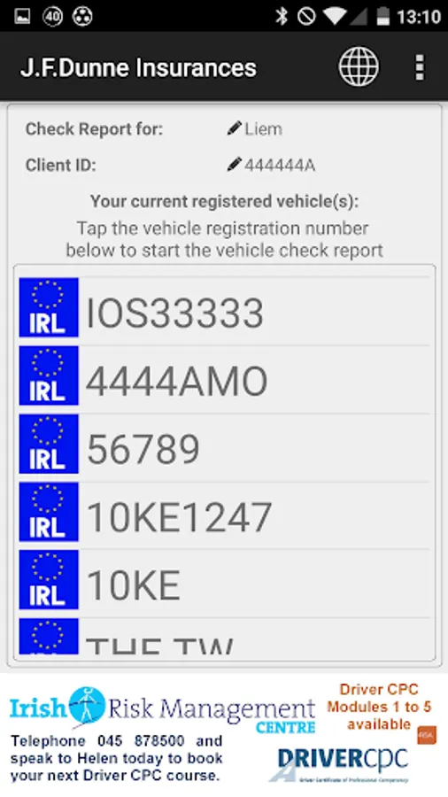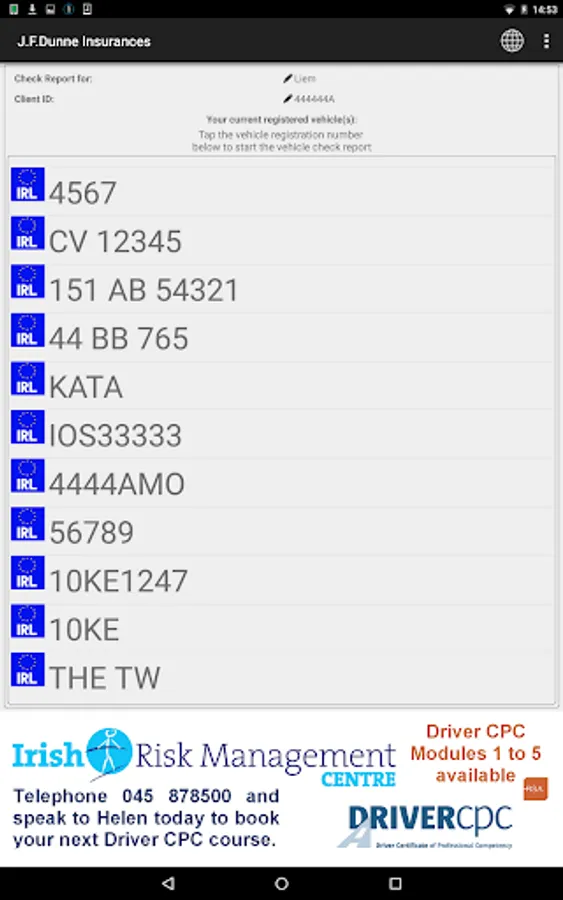 The Application is available only to clients of the J.F.Dunne Insurances PSV Bus & Coach Programme and has to be activated by J.F.Dunne Insurances Ltd. J.F.Dunne Insurances Ltd will also receive a copy of any checks carried out and will hold these on your client record.
