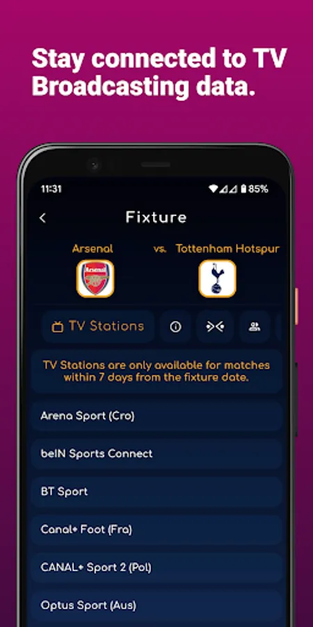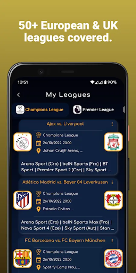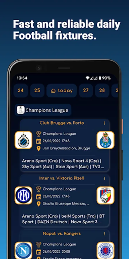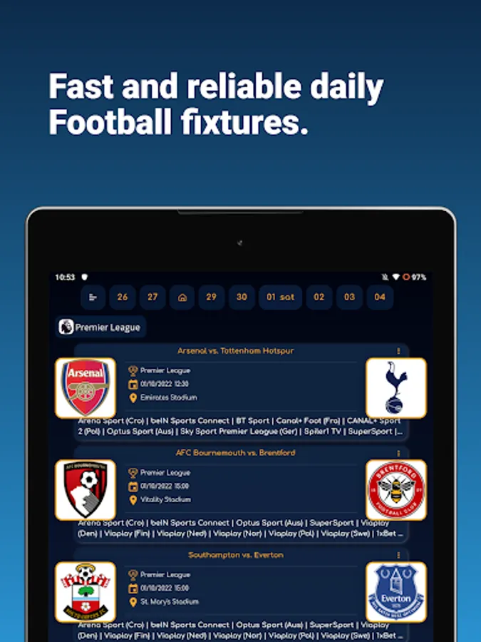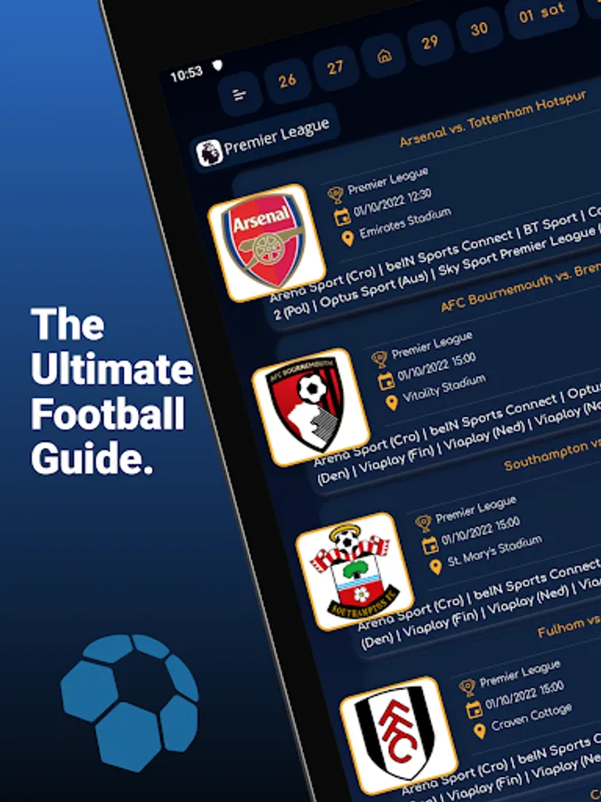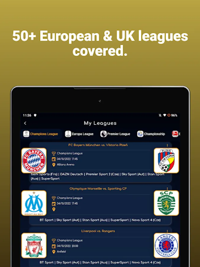 Think of us as your favourite live football tv schedule app for Android - ideal to find the best guide to watch football live and your favourite streaming channel.