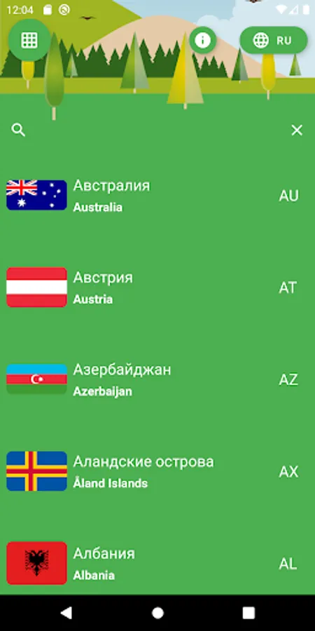 - The main language can be selected (Russian, Ukrainian, etc.). The duplicating language is always English (it is convenient to understand how the country is written in the native language and English);